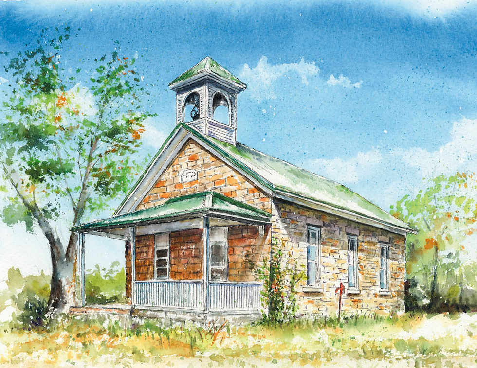 5.5" x 4.25" note cards on smooth matte 12 point cardstock with white A2 envelopes. Front features artwork. Back includes a photo and information about the school (name, county, district number and dates built and closed)…